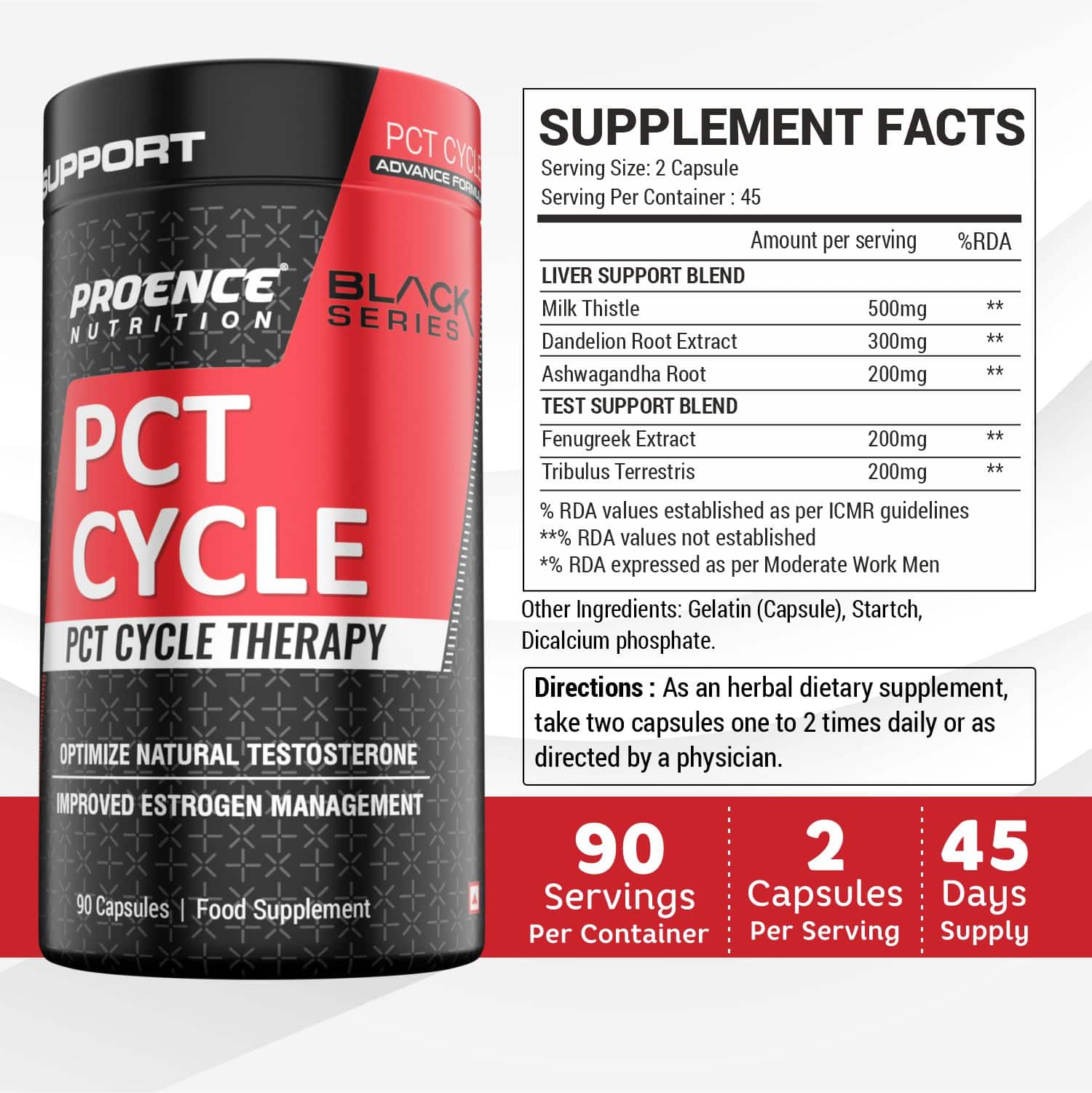 Proence PCT Cycle is a dietary supplement provided in capsule form for convenient daily use. The product is supplied in a bottle containing 90 capsules and is intended for adult use only.